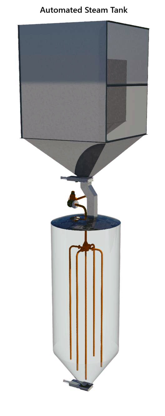 Steaming plant consists of steaming tanks, specially designed Five-way steam distribution system along with its diagonally perforated steam injector, pneumatic slide gates and level sensors. Steaming plant is used for the ageing of Raw (white) rice an to obtain good cooking quality, color and taste.